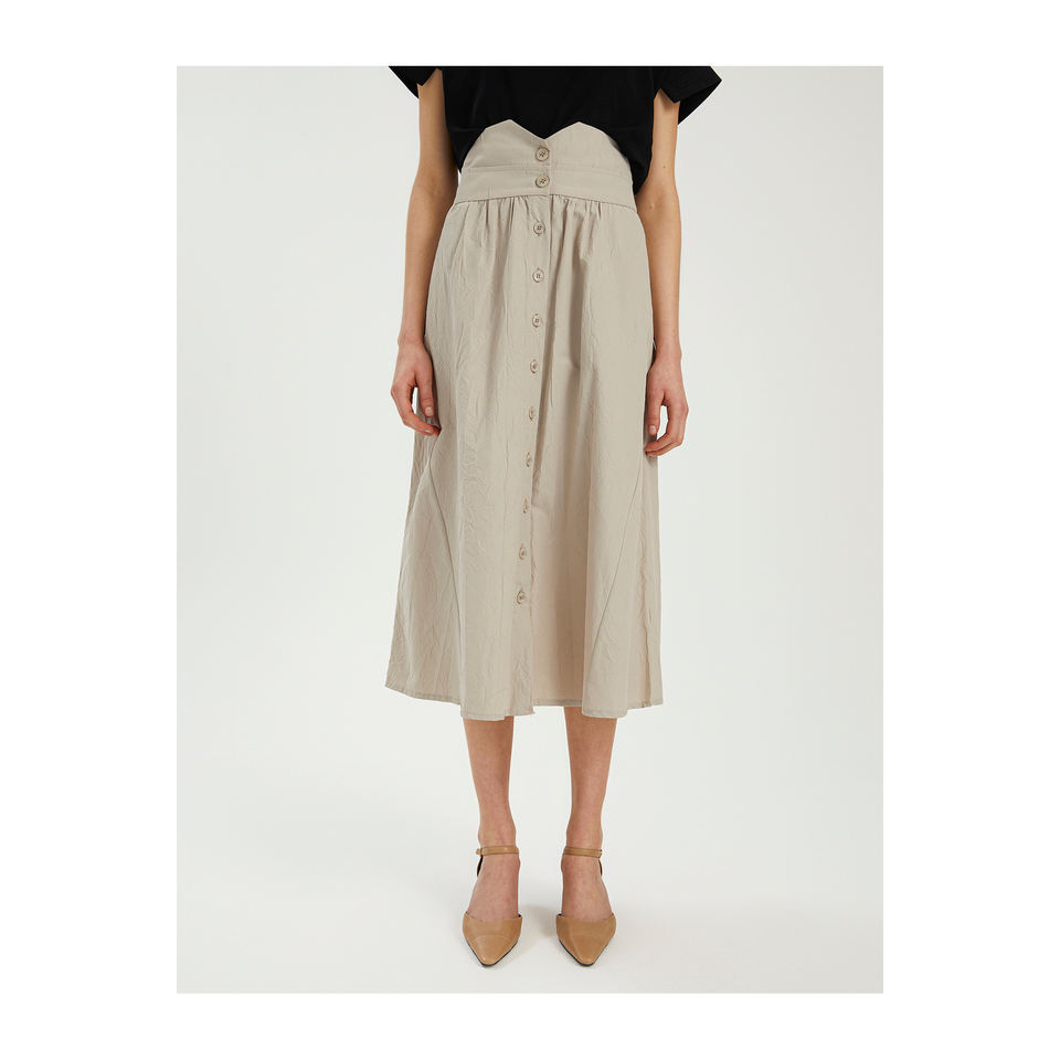 กระโปรงมิดิผู้หญิง BGN ผ้าผสมคอตตอน แต่งกระดุม รุ่น S23S214