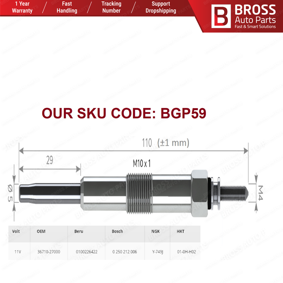 BGP59 1 Piece Heater Glow Plugs GX102, 0100 226422 Bross Auto Parts Made in Turkey High Quality Product