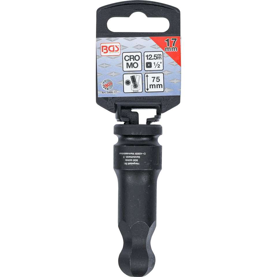 BGS กระทบซ็อกเก็ตบิตยาว75mm 12.5mm (1/2 ") ไดรฟ์หกเหลี่ยมภายในที่มีหัวลูก17mm
