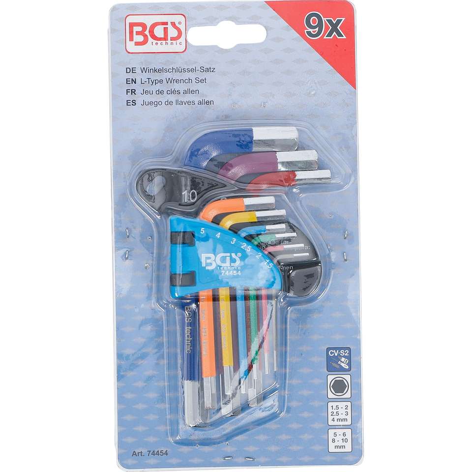 BGS ประแจชนิด L ตั้ง1.5หกเหลี่ยมภายในสั้นหลายสี-10มม. 9ชิ้น
