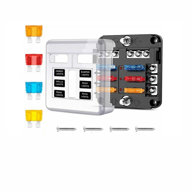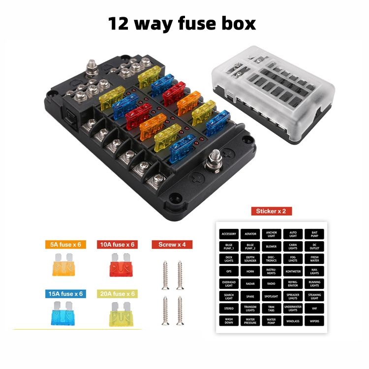 BH-6PDF/12PDF กล่องฟิวส์ 6 ทาง/12 ทาง พร้อมไฟ LED และขั้วลบ - สำหรับการดัดแปลงรถยนต์/รถบรรทุก/รถบ้าน