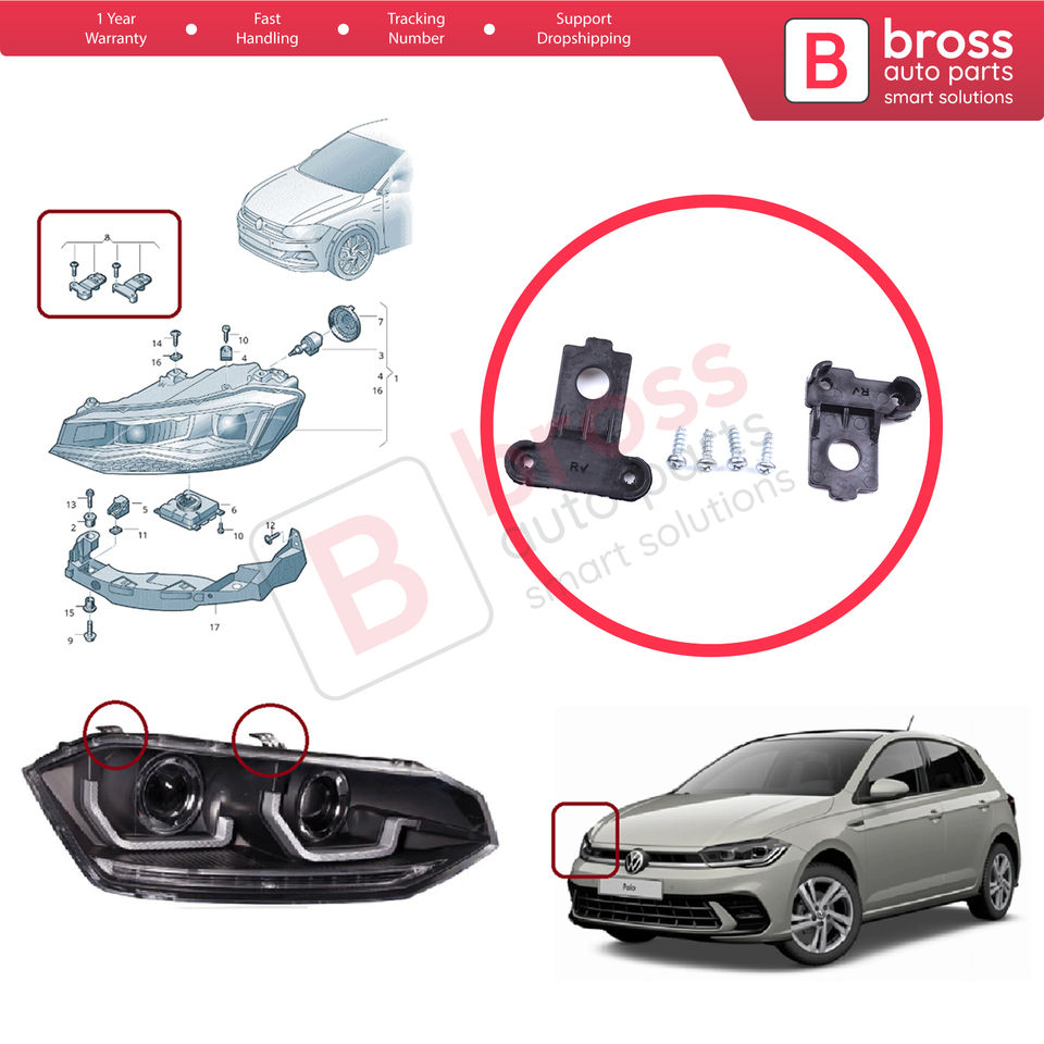 ชุดยึดติดยึดไฟหน้า BHL568-2ชุดยึดติดกับด้านขวาสำหรับ BZ1 AW1 VW Polo MK6 AE1 2017-บน2G0998226ประตู4/5