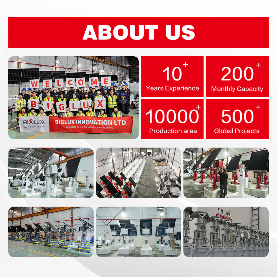 รถพ่วงกล้องวงจรปิดเคลื่อนที่ BIGLUX พร้อมเสาโซลาร์เซลล์ ระบบกล้องวงจรปิด 4G สำหรับการเฝ้าระวังความปลอดภัยด้วยพลังงานแสงอาทิตย์สำหรับลานจอดรถ