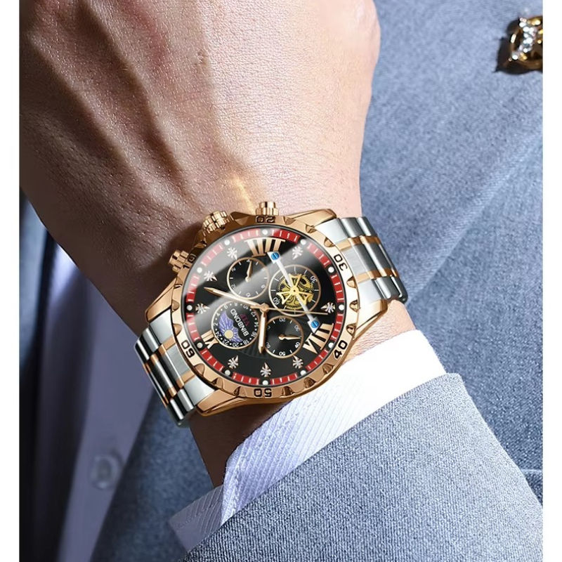 นาฬิกาข้อมือ BINBOND 3103 รุ่นลำลองธุรกิจอเนกประสงค์ หน้าปัดใหญ่ สายเหล็กและหนังและซิลิโคน สำหรับผู้ชาย เรืองแสงได้ เหมาะสำหรับเล่นกีฬา