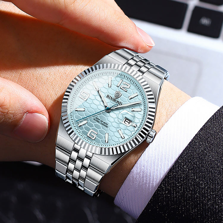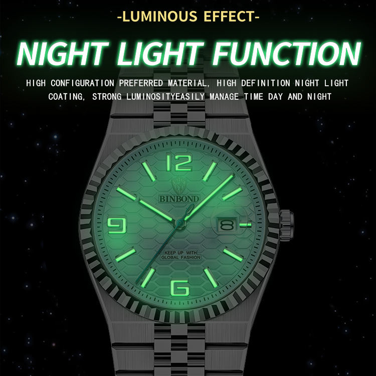 นาฬิกาข้อมือผู้ชาย BINBOND 8181 รุ่นใหม่ปี 2026 ขนาด 40 มม. ดีไซน์หรูหรา หน้าปัดใหญ่ กันน้ำ เรืองแสง พร้อมปฏิทิน