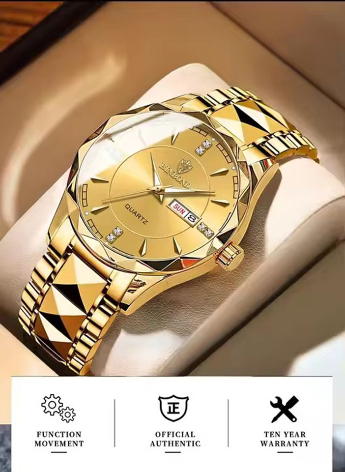 นาฬิกาข้อมือควอตซ์ BINBOND B5552 รุ่น Unisex ดีไซน์ธุรกิจแฟชั่น หน้าปัดกระจกขนาดใหญ่ กันน้ำ ตัวเรือนสแตนเลส พร้อมปฏิทิน