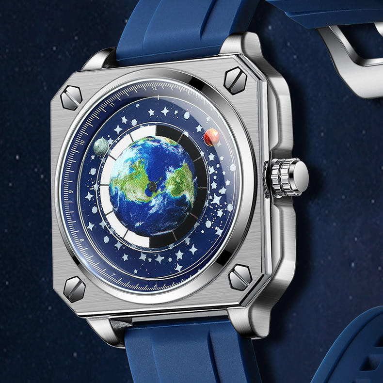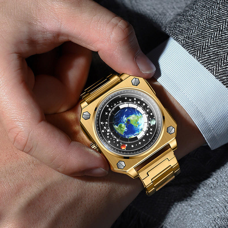 นาฬิกา BINBOND S700 Earth Watch สำหรับผู้ชาย สายโลหะผสมสแตนเลส สไตล์ธุรกิจ แฟชั่น นักศึกษา ลายดาวเคราะห์สีน้ำเงิน ดีไซน์สร้างสรรค์ ควอตซ์