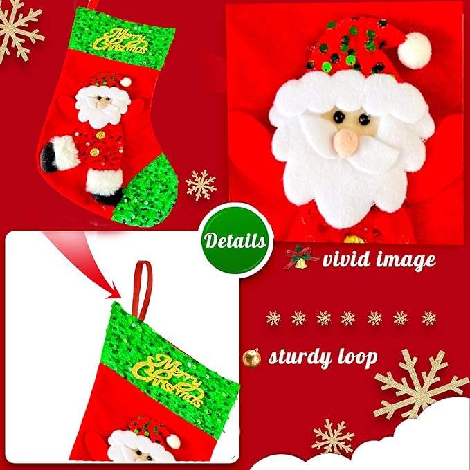 Binlu ถุงเท้าพิมพ์ลายซานตาคลอสขนาดใหญ่สำหรับตกแต่งต้นคริสต์มาส