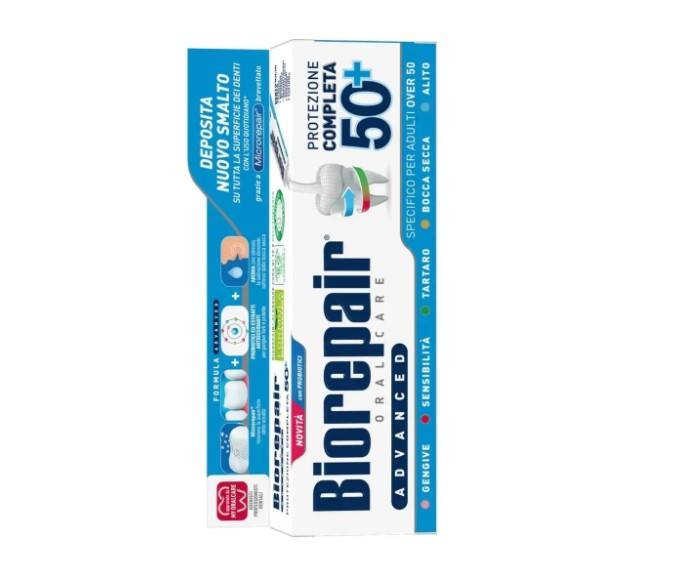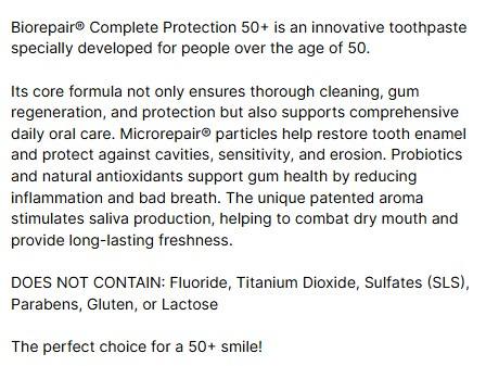 ยาสีฟันไบโอรีแพร์ ปกป้องฟันอย่างสมบูรณ์แบบ 50+ 75 มล. ป้องกันริ้วรอย ดูแลสุขภาพช่องปาก ปราศจากฟลูออไรด์ ผลิตในอิตาลี