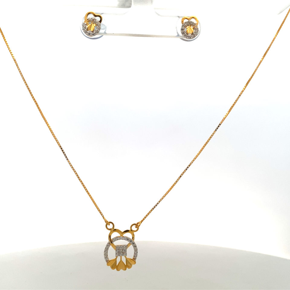 ชุดสร้อยคอและต่างหูทองคำ 22K สีเหลือง