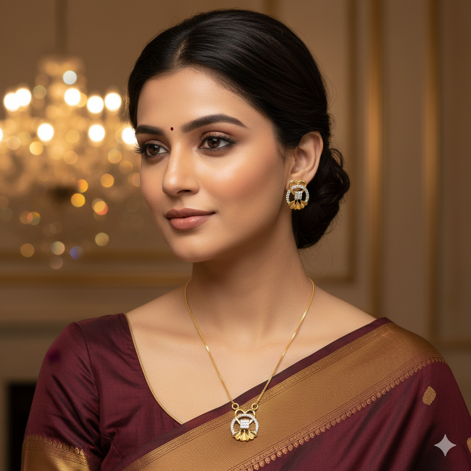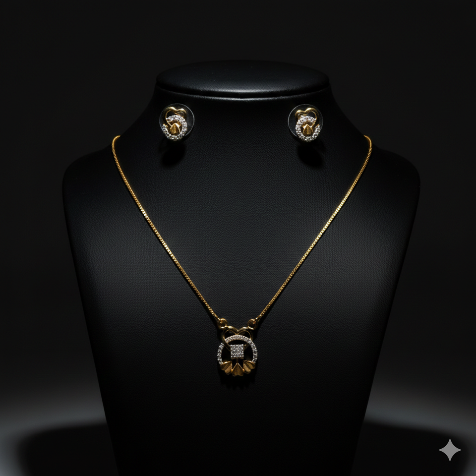 ชุดสร้อยคอและต่างหูทองคำแท้ 22K ตรา BIS - เครื่องประดับรูปหัวใจลายดอกไม้ทำมือ