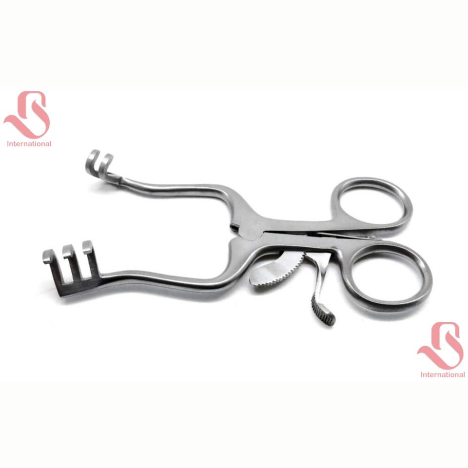 ชุดเครื่องมือผ่าตัด BISONS Wholesale ผลิตจากสแตนเลส 3x Weitlaner Retractor ขนาด 4.5 นิ้ว ปลายทู่ 3x2 แฉก คุณภาพพรีเมียม