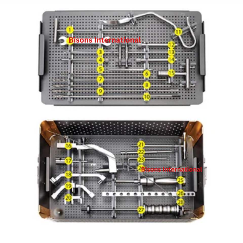 ชุดเครื่องมือยึดกระดูกแบบแมนนวลสำหรับกระดูกต้นแขน ทำจากเหล็กกล้าไร้สนิม ได้รับการรับรองมาตรฐาน BISONS CE และ ISO13485 พร้อมชุดอุปกรณ์ยึดกระดูกแบบประสาน