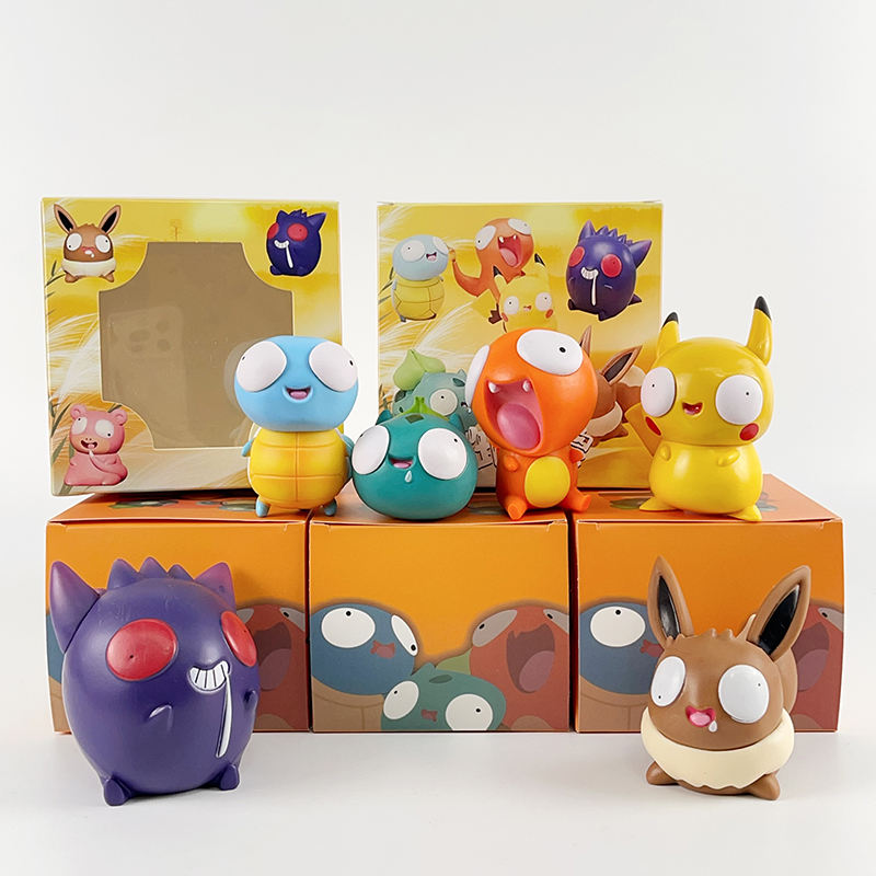 BJ ตุ๊กตาอะนิเมะ pokemones ตาใหญ่รูปตลก pikachus Charmander Bulbasaur Squirtle ของเล่นน่ารักคอลเลกชันตุ๊กตาโมเดล PVC
