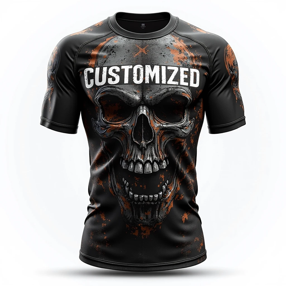 BJJ เสื้อแรชการ์ดแบบพรีเมียมชุดฝึกพิมพ์ดิจิตอลคุณภาพสูงทนทานเสื้อ MMA ระบายอากาศป้องกันรังสียูวีแห้งเร็วออกแบบได้ตามต้องการ