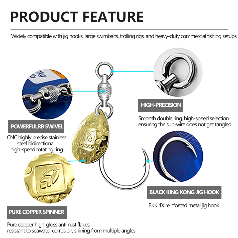 จิ๊กใบมีดเสริมความแข็งแรง BKK 4X พร้อมตัวหมุนทองแดงป้องกันสนิม ผลิตจากเหล็กกล้าไร้สนิม CNC หมุนได้ความเร็วสูง ทนทานต่อการกัดกร่อนในน้ำเค็ม