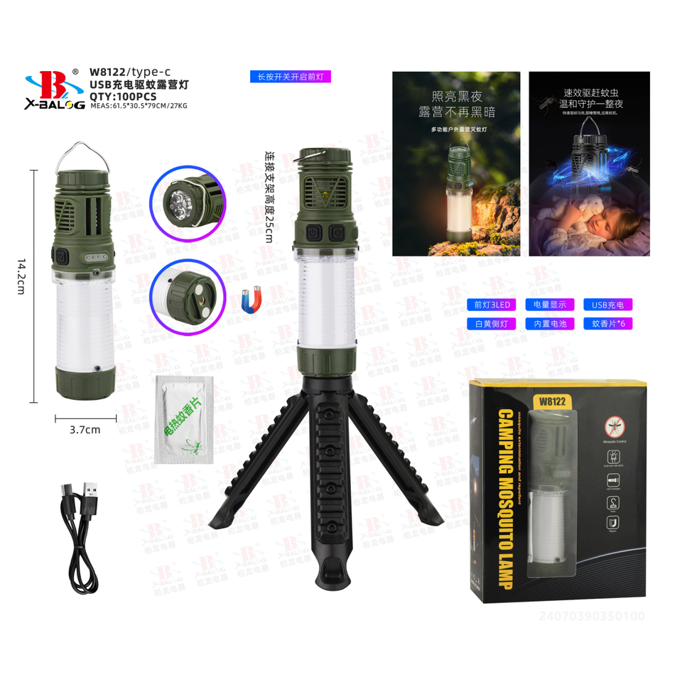BL-W8122 USB Rechargeable Camping Lamp Mosquito Repellent and Light Source