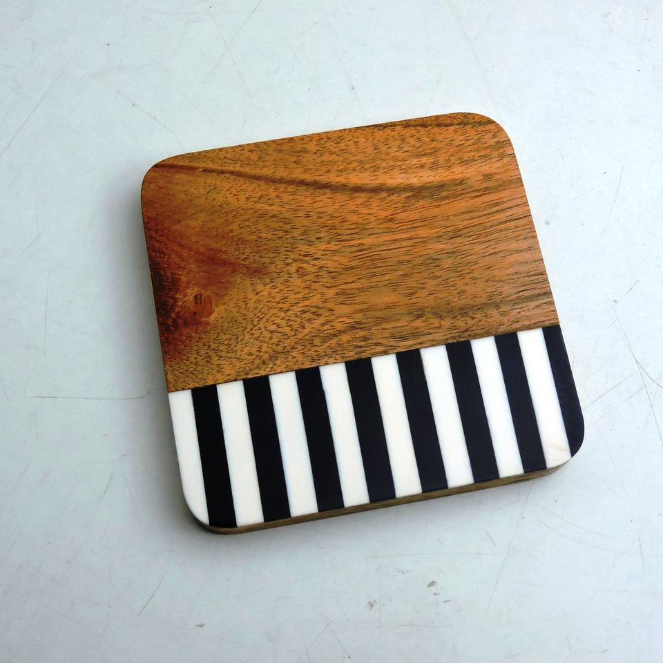 แผ่นรองแก้วลายแถบเปียโนสีดำและสีขาวสินค้าทำด้วยมือ