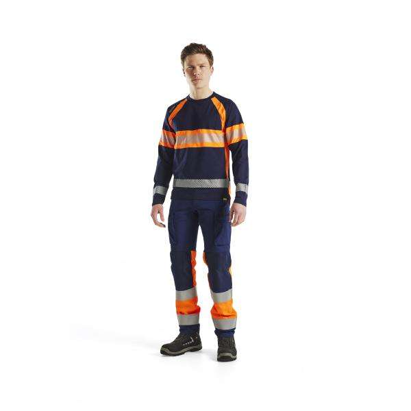 Blaklader-351010308853XL เสื้อยืดแขนยาว Hi-Vis สีน้ำเงินเข้ม/สีส้ม-EAN 7330509714065ชุดทำงาน HI-VIS