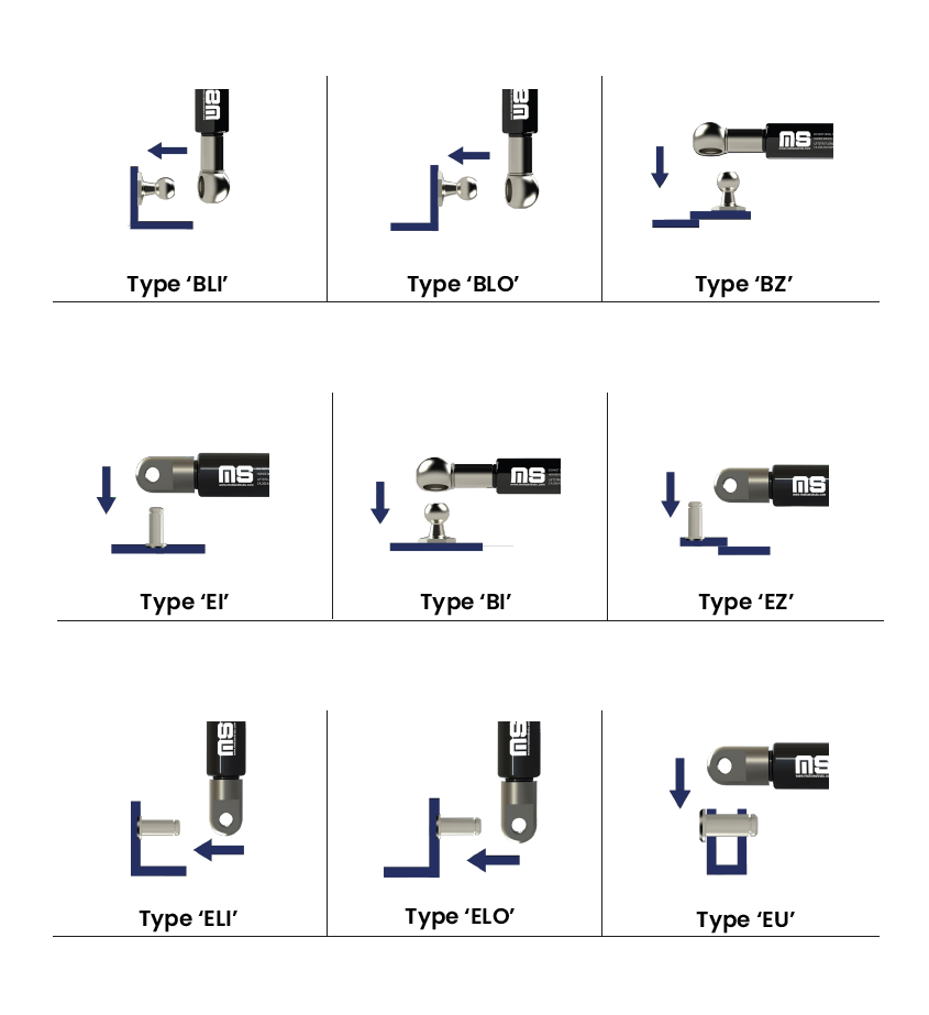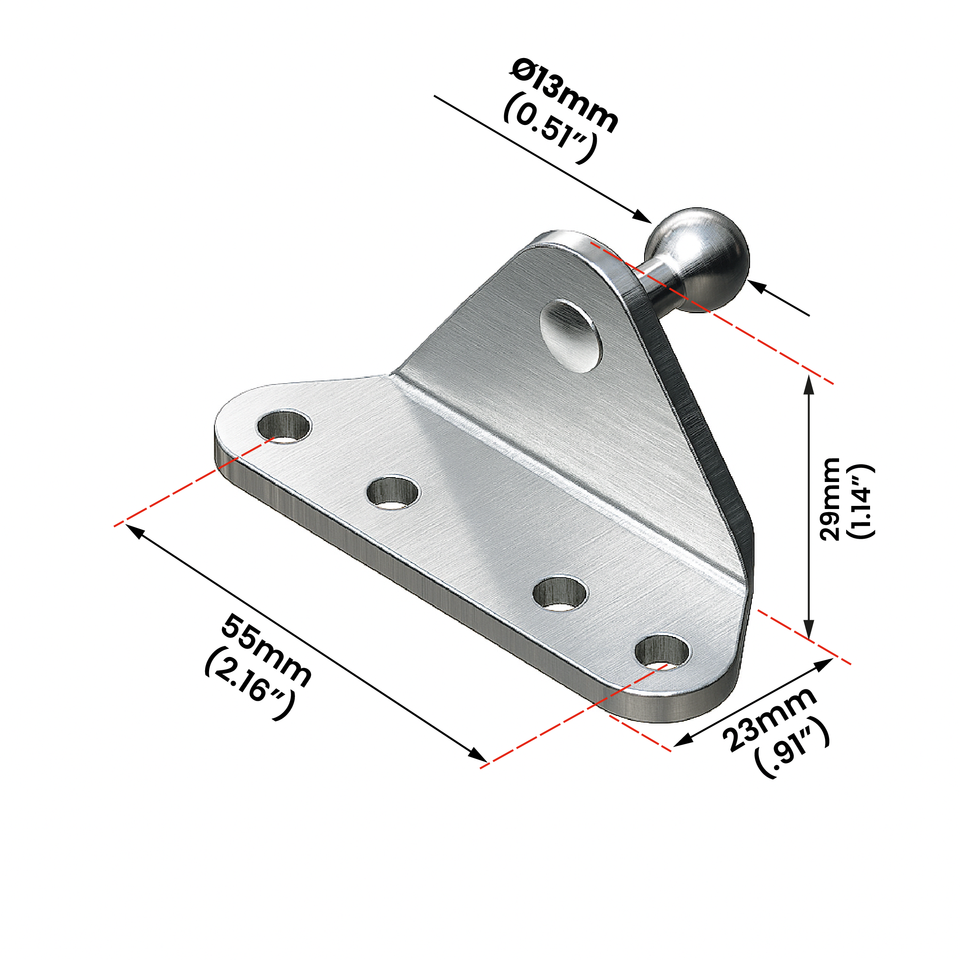 BLO2204ยึดสตรัทก๊าซแบบสากลตัวยึดลูก51in 13มม. ตัวยึดบอลกระดุม90องศา