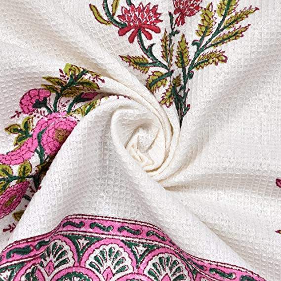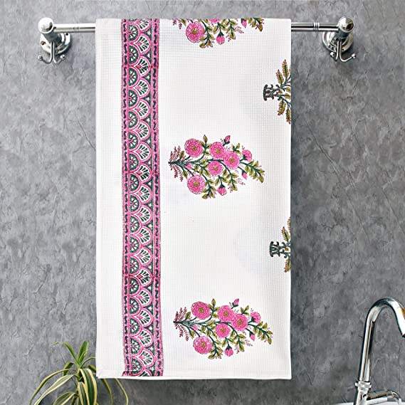 ผ้าขนหนูผ้าฝ้ายลายวาฟเฟิลสีชมพูทำมือสุดหรูจากอินเดีย พิมพ์ลายด้วยมือด้วยบล็อก ดีไซน์ไม่ซ้ำใคร ขนาด 135x68 ซม.