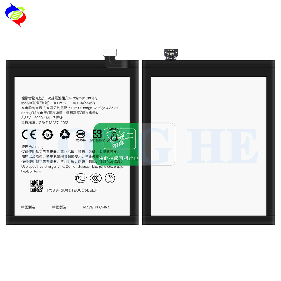 แบตเตอรี่ลิเธียมโพลิเมอร์ BLP593สำหรับโทรศัพท์ OPPO Neo 5 A31R1201 A31T U 2000mAh 3.85V