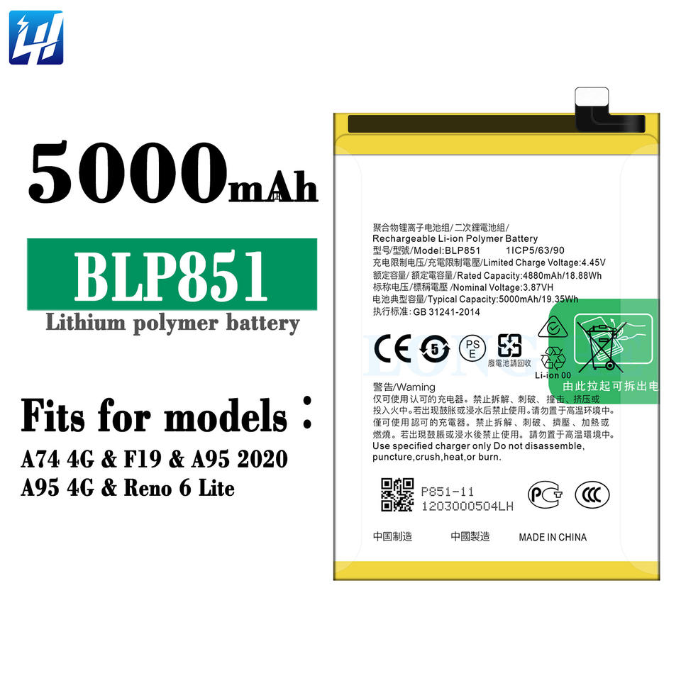 แบตเตอรี่โทรศัพท์มือถือแบบชาร์จได้ BLP851 สำหรับ OPPO A74 4G F19 A95 2020 A95 4G Reno 6 Lite CPH2365
