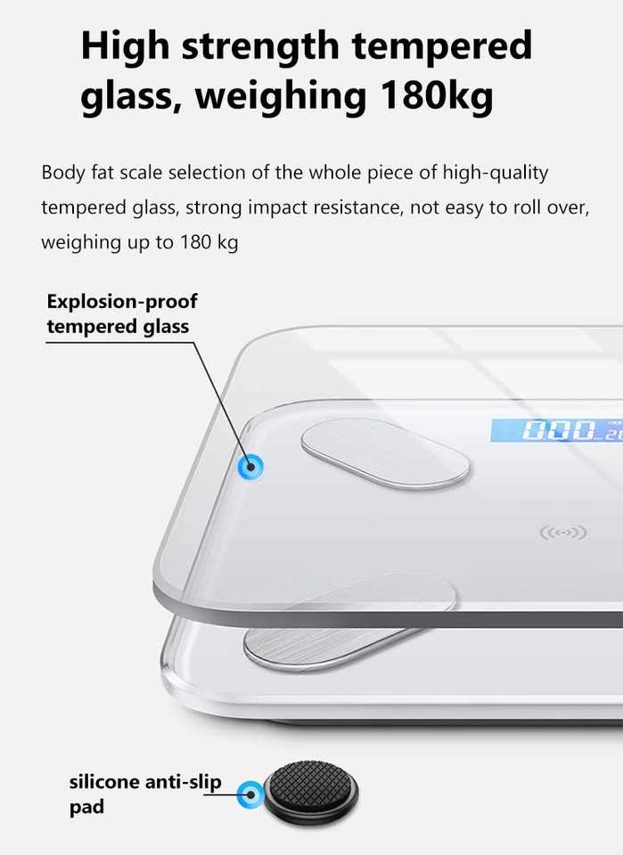 ชื่อสินค้า:เครื่องชั่งน้ำหนักอัจฉริยะวัดไขมันในร่างกายสำหรับห้องน้ำ คุณภาพโรงงาน พร้อมแอป