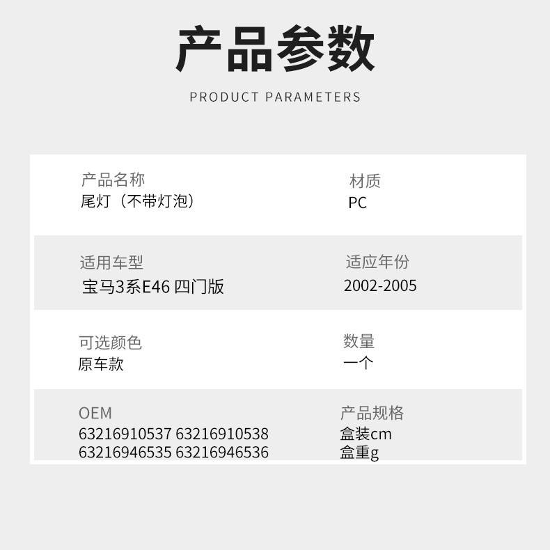 Applicable to BMW 3 Series E46 four-door version, 2002-2005Applicable models