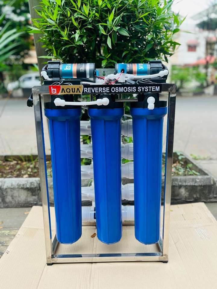 ระบบกรองน้ำ RO BNJ Aqua 50 ลิตรต่อชั่วโมง พร้อมตัวกรองขนาด 20 นิ้ว ป้องกันการรั่วซึม โครงสร้างพลาสติกทนทาน ใช้พลังงานไฟฟ้ากระแสตรง/กระแสสลับ แบบเคลื่อนย้ายได้ พร้อมแผ่นกรองนาโน