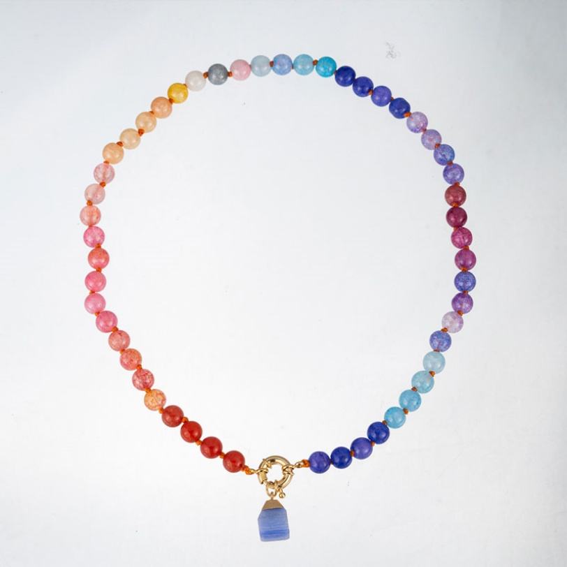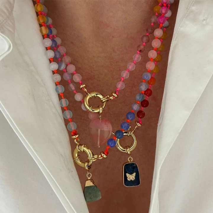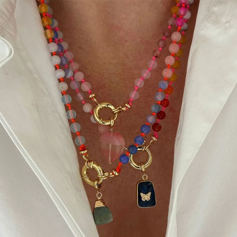 BOHEMIA Anti Tarnish Custom Stainless Steel 14k 18k Gold Plated Natural Stone Bead Pendant Necklace for Men Women