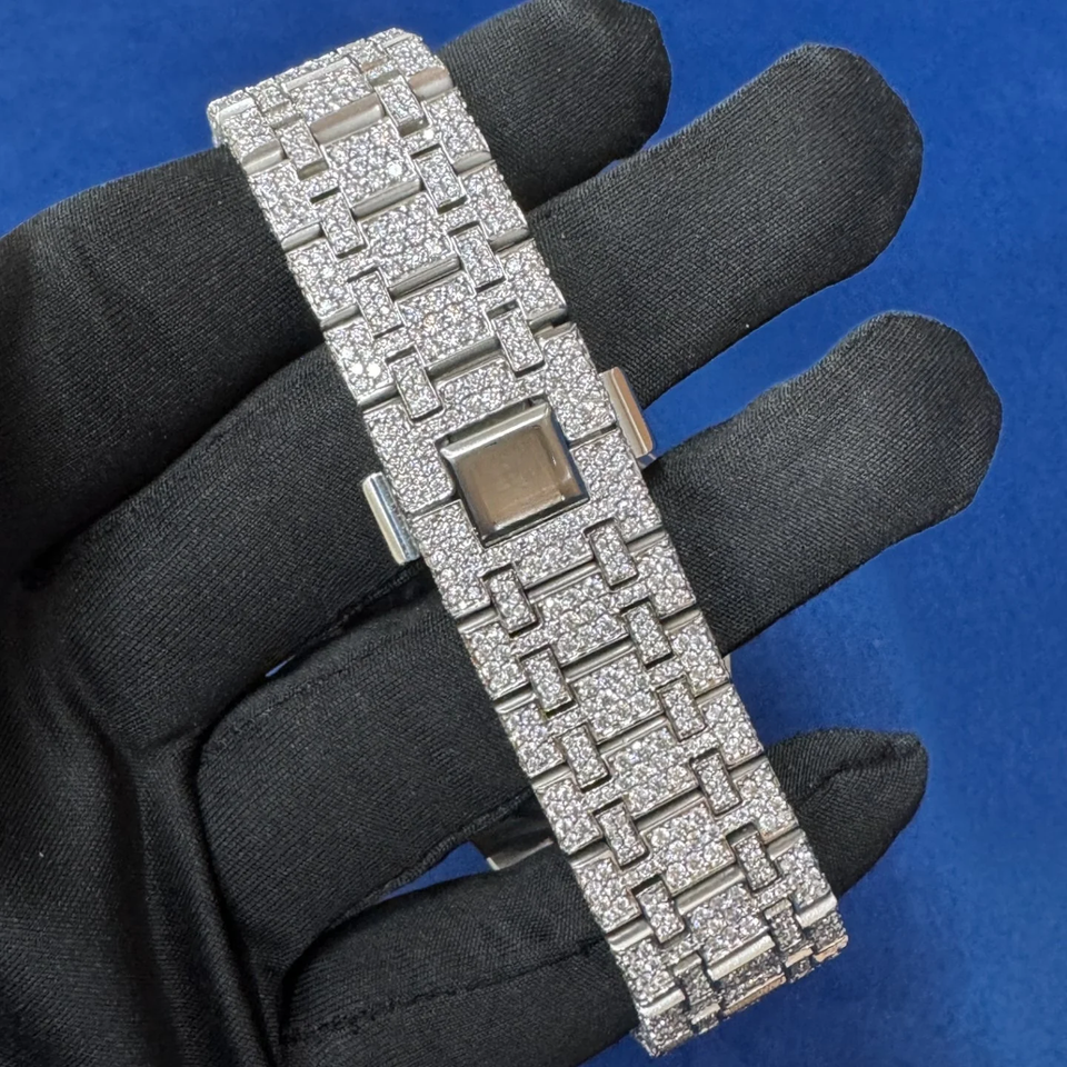 นาฬิกา BOJ A.P พรีเมียม VVS เพชรแก้วอัลลอยด์สแตนเลสสตีล 20 มม. ประดับเพชรโมอิสซาไนต์เต็มหน้าปัด ระบบอัตโนมัติแบบสองกลไก ขนาด 41 มม. กันน้ำ 3 บาร์