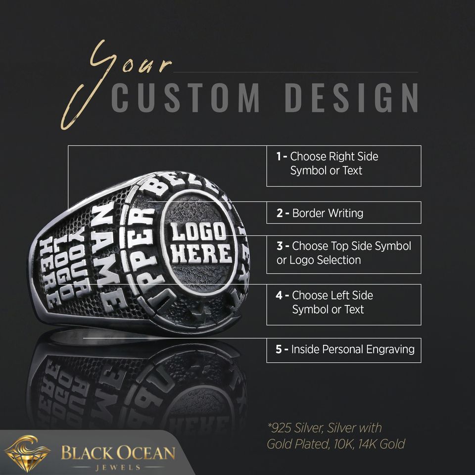 แหวนสั่งทำ BOJ รุ่น 010 สลักชื่อและโลโก้ตามสั่ง แหวนเงินแท้ 925 ชุบทอง ดีไซน์ทำมือ ราคาพิเศษ