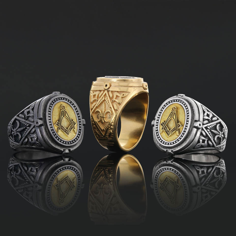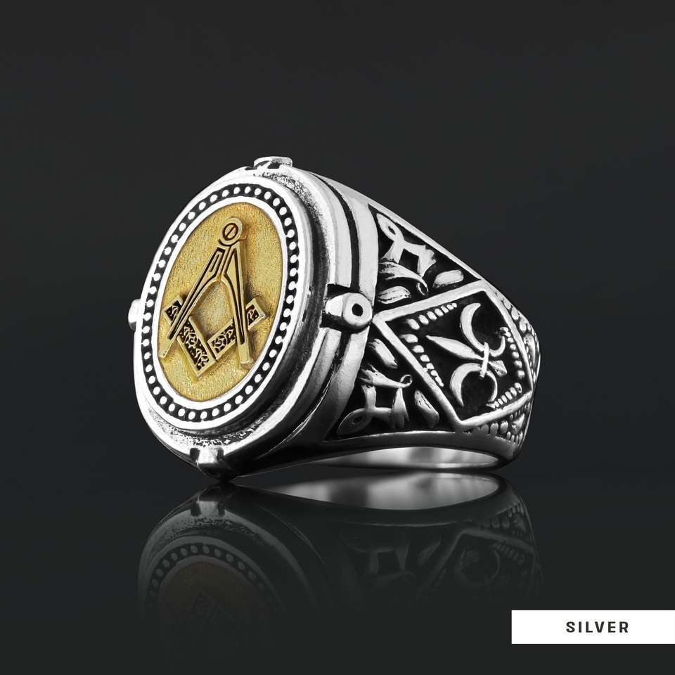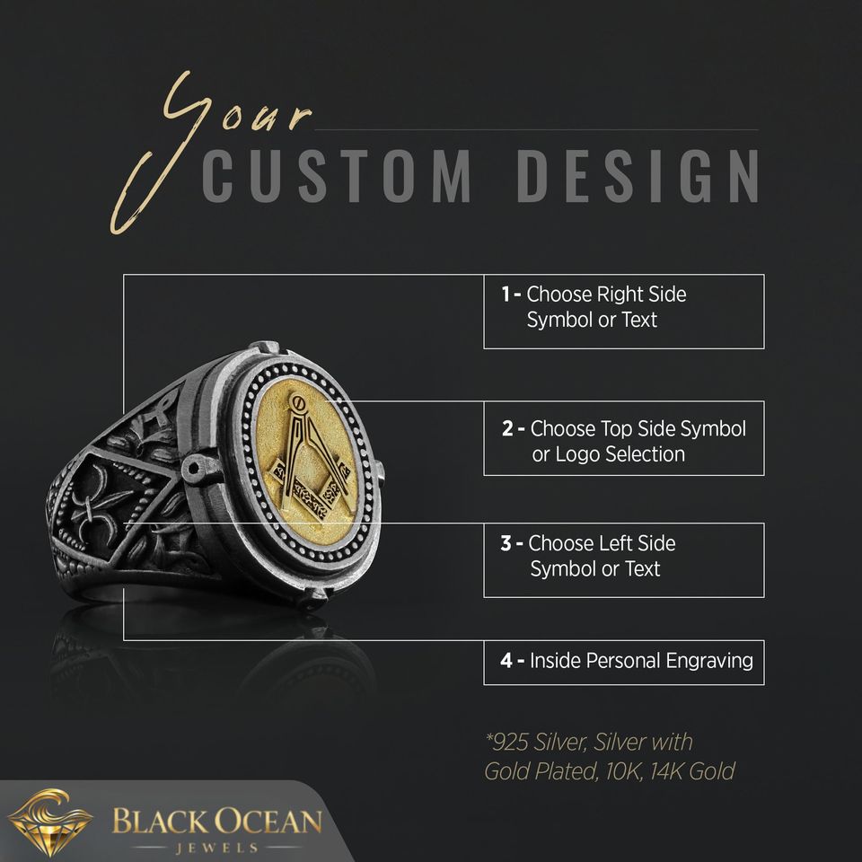 แหวนเมสัน BOJ รุ่น 010 แบบกำหนดเองได้ สำหรับทั้งชายและหญิง แหวนตราประทับฟรีเมสันส่วนบุคคล แหวนตราประทับมาสเตอร์เมสันเท็กซัส สไตล์ฮิปฮอป สีเงิน ราคาประหยัด