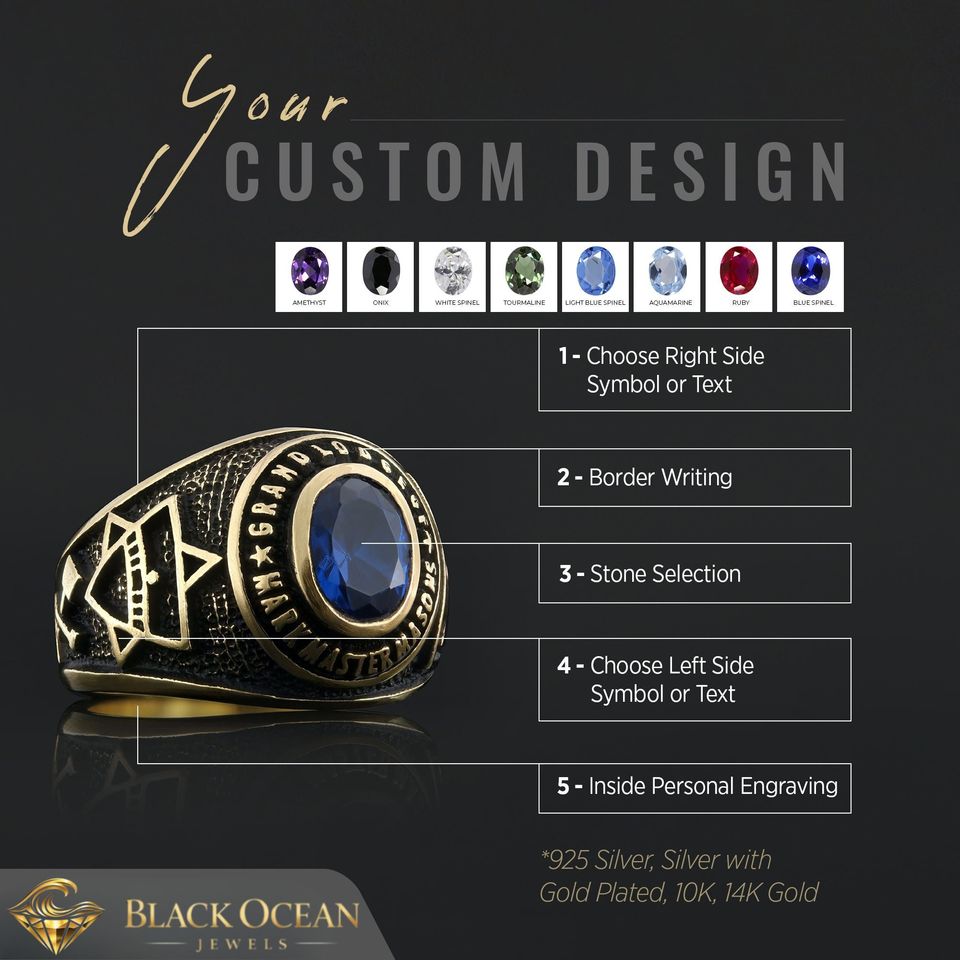แหวนเมสัน BOJ รุ่น 022 แบบกำหนดเองได้ สำหรับทั้งชายและหญิง แหวนตราประทับฟรีเมสันส่วนบุคคล แหวนตราประทับมาสเตอร์เมสันเท็กซัส สไตล์ฮิปฮอป สีเงิน ราคาประหยัด