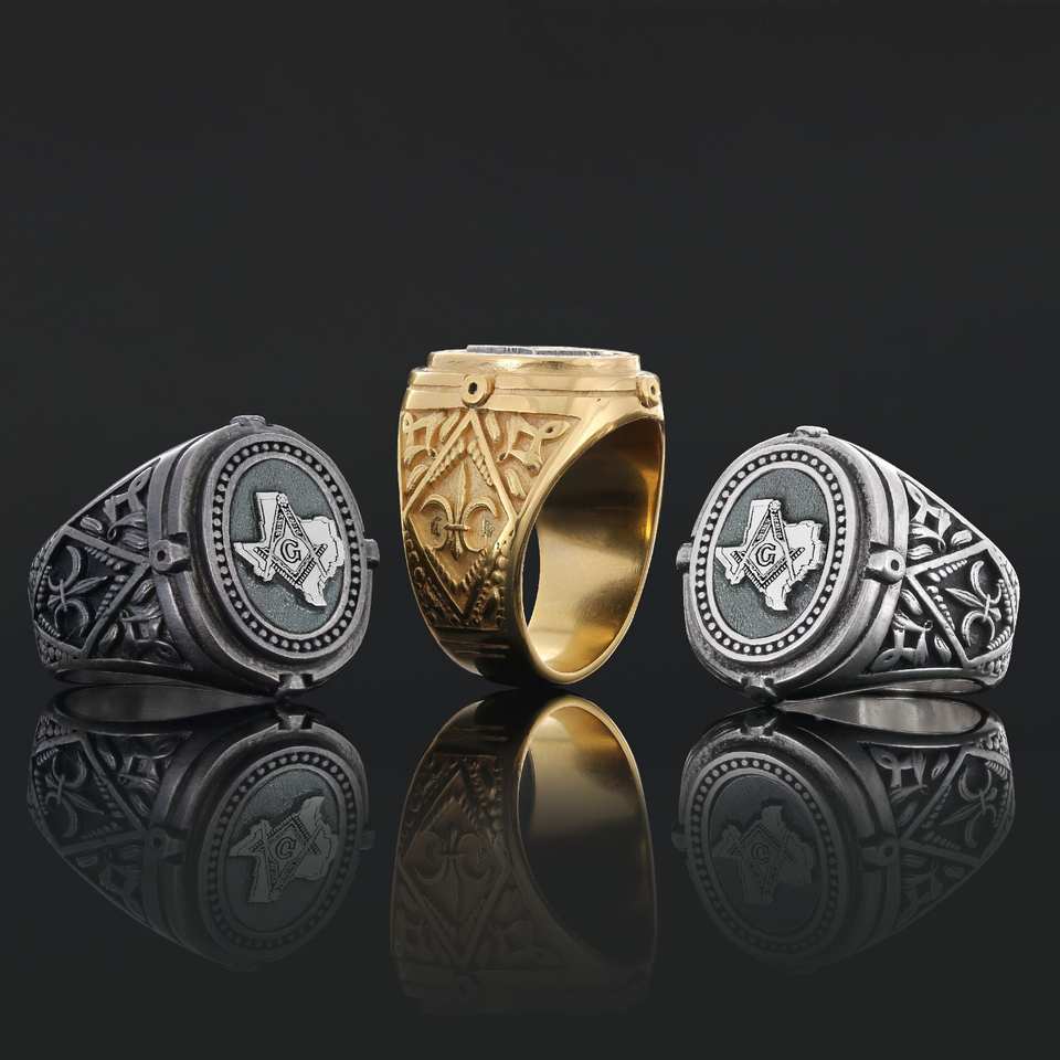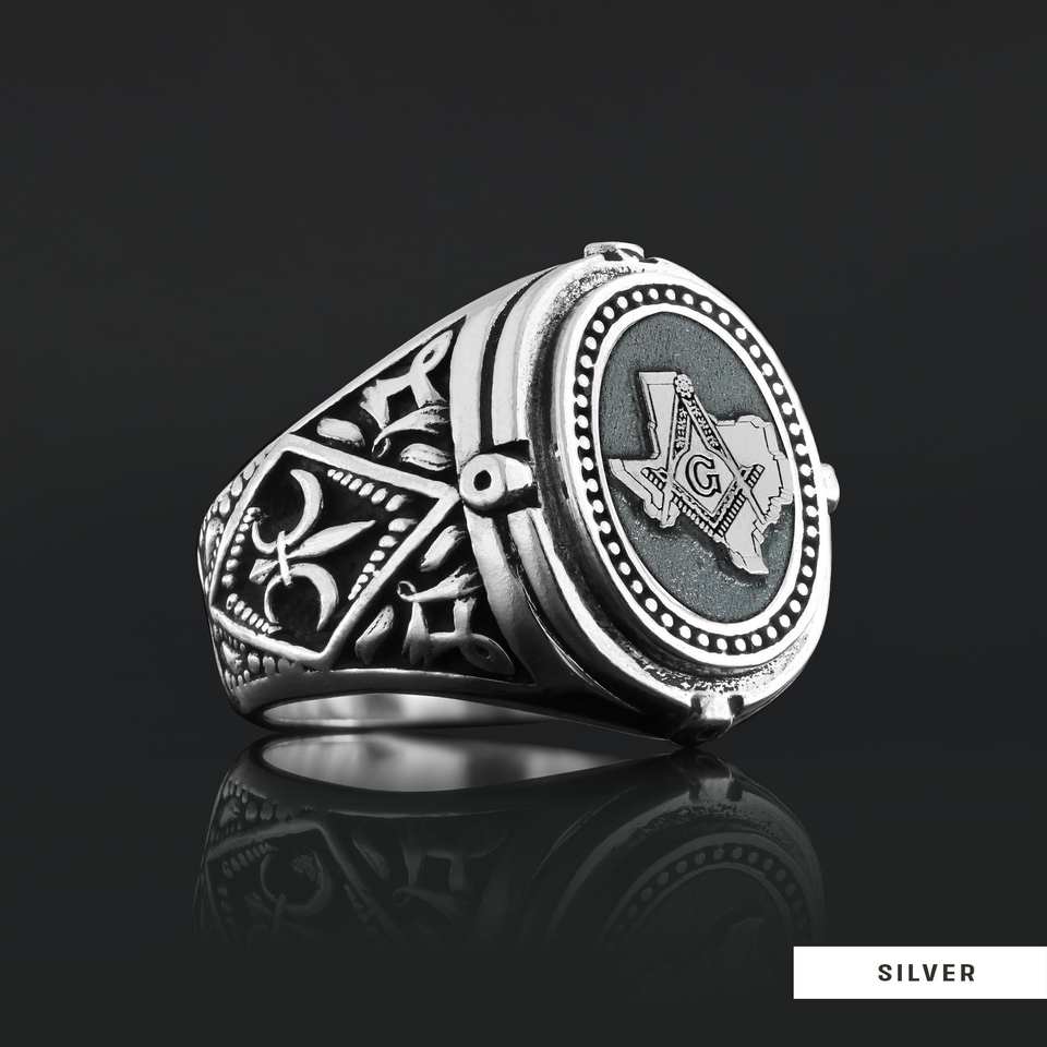 แหวนเมสัน BOJ รุ่น 024 แบบกำหนดเองได้ สำหรับทั้งชายและหญิง แหวนตราประทับฟรีเมสันส่วนบุคคล แหวนตราประทับมาสเตอร์เมสันเท็กซัส สไตล์ฮิปฮอป สีเงิน ราคาประหยัด