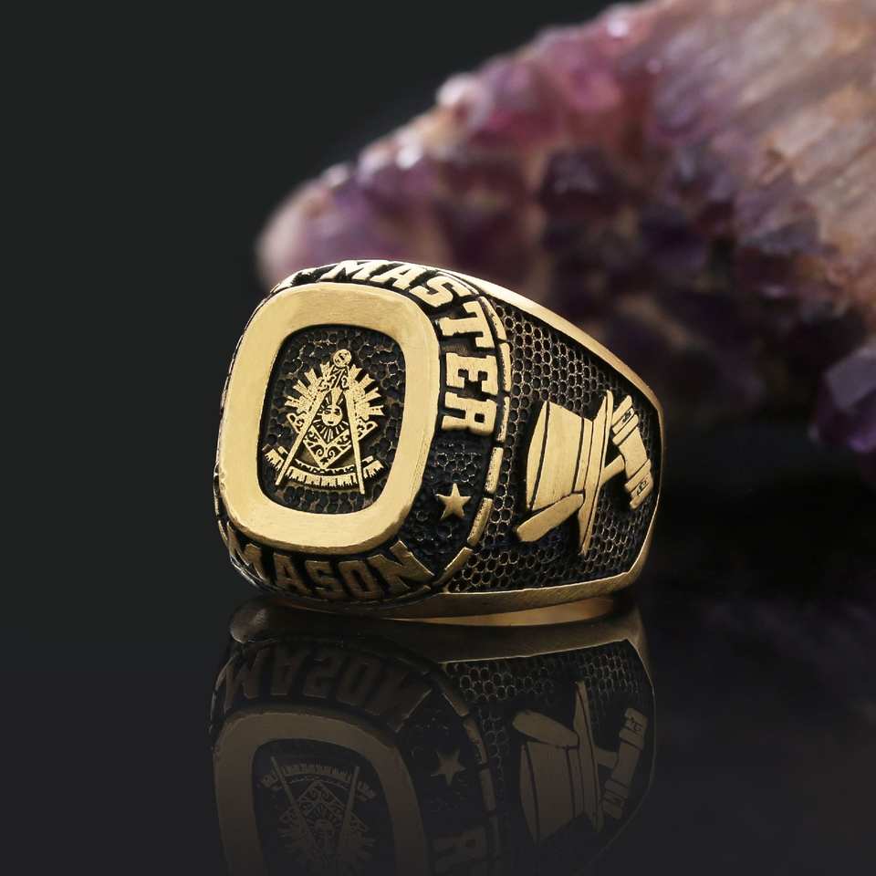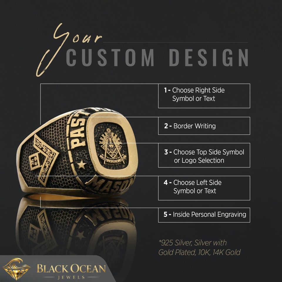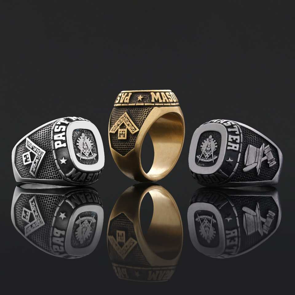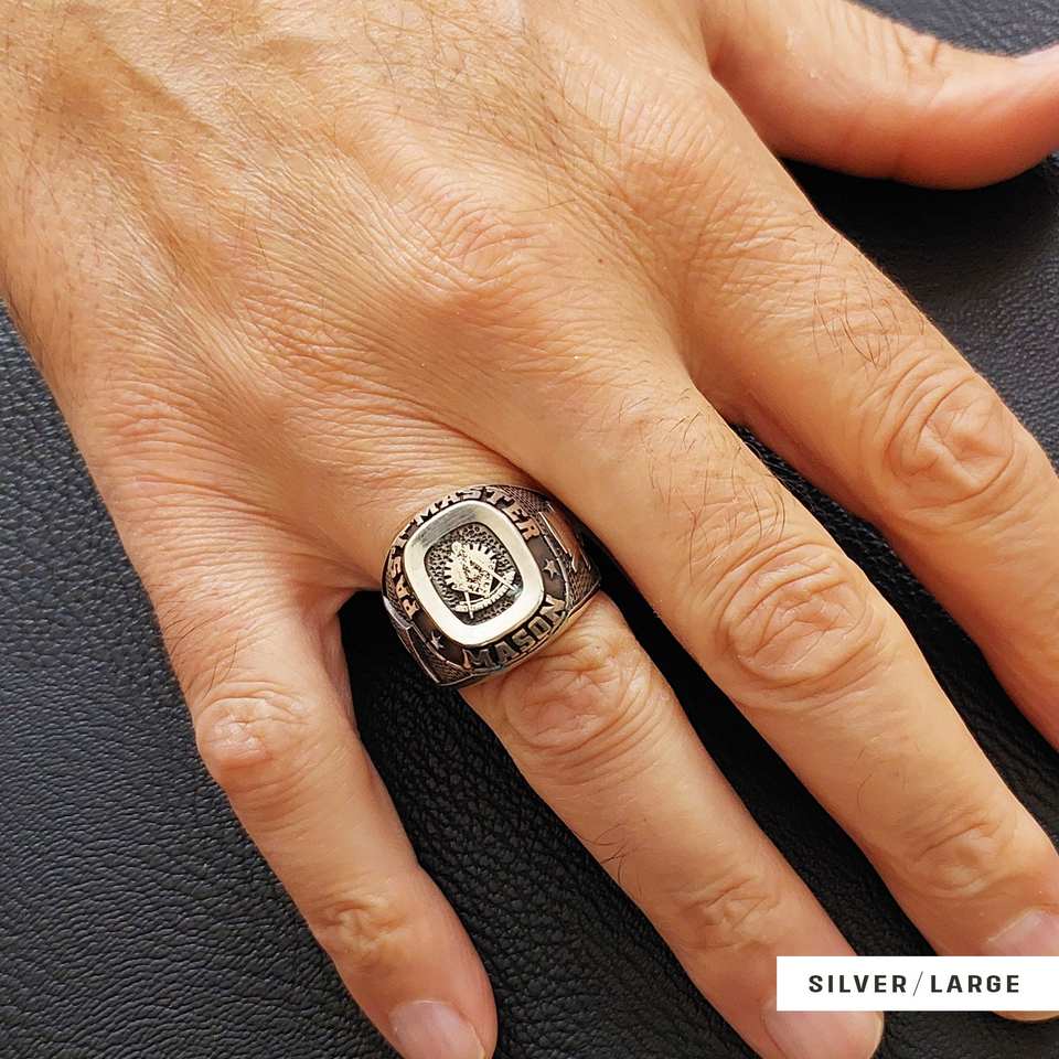 แหวนเมสัน BOJ รุ่น 029 แหวนสั่งทำพิเศษสำหรับทุกเพศ แหวนตราประทับฟรีเมสันแบบปรับแต่งได้ แหวนตราประทับมาสเตอร์เมสันเท็กซัส ฮิปฮอป สีเงิน ราคาประหยัด