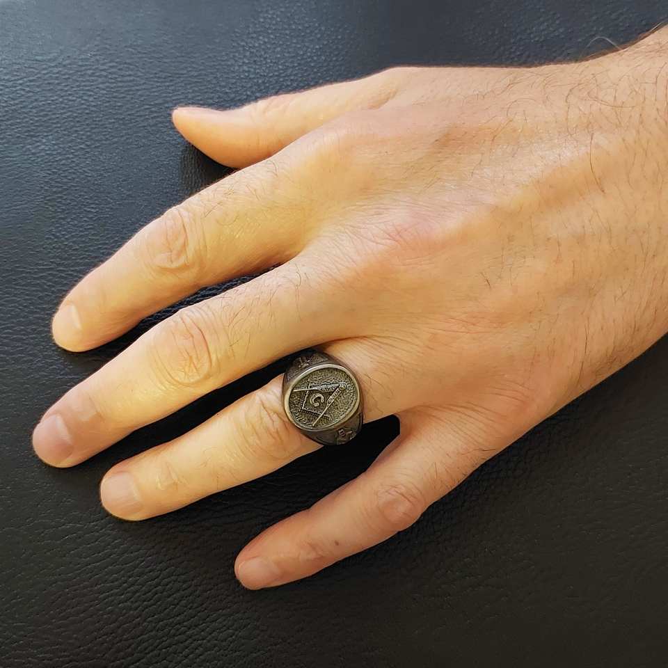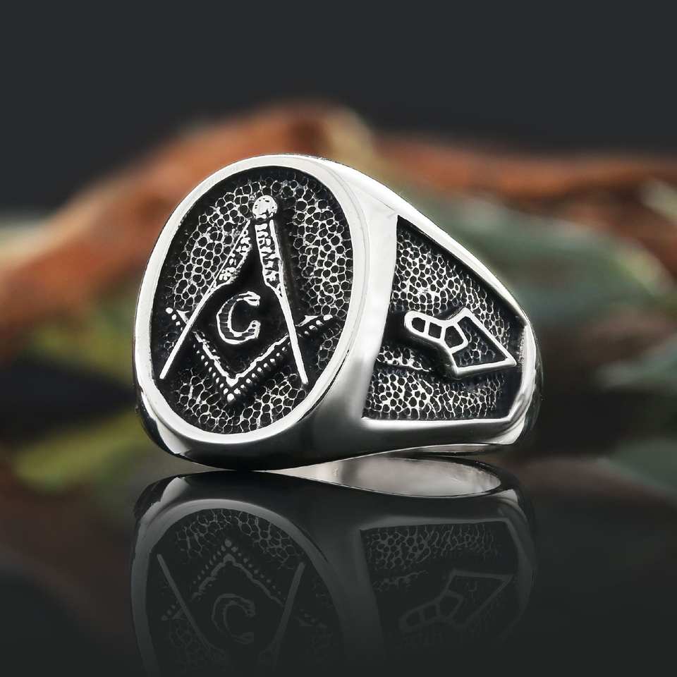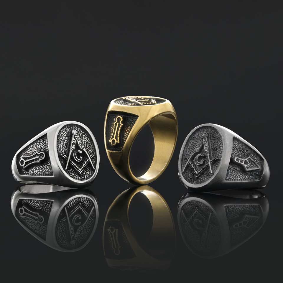 แหวนเมสัน BOJ รุ่น 031 แหวนสั่งทำพิเศษสำหรับทุกเพศ แหวนตราประทับฟรีเมสันแบบปรับแต่งได้ แหวนตราประทับมาสเตอร์เมสันเท็กซัส ฮิปฮอป สีเงิน ราคาประหยัด