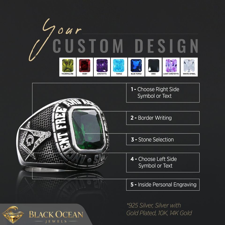 แหวนเมสัน BOJ รุ่น 040 แบบกำหนดเองได้ สำหรับทั้งชายและหญิง แหวนตราประทับฟรีเมสันส่วนบุคคล แหวนตราประทับมาสเตอร์เมสันเท็กซัส สไตล์ฮิปฮอป สีเงิน ราคาประหยัด