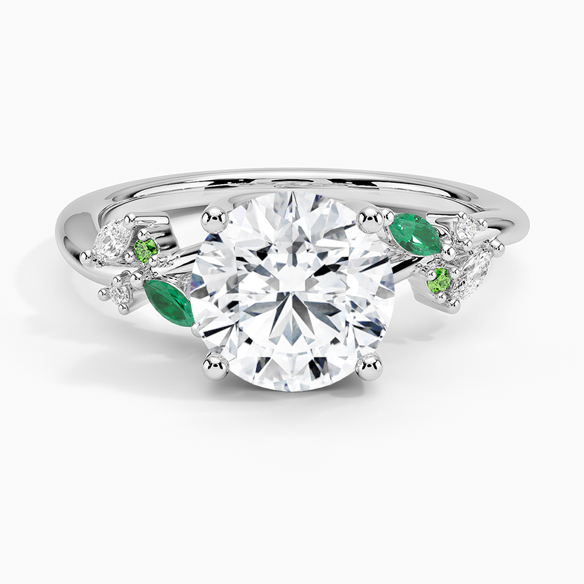 แหวน BOJ รุ่น 017 ทรงกลม เงินแท้ 925 ประดับเพชร Arden Lab และมรกตสังเคราะห์ 2 กะรัต สี D ความสะอาด VVS1 พร้อมใบรับรอง GRA