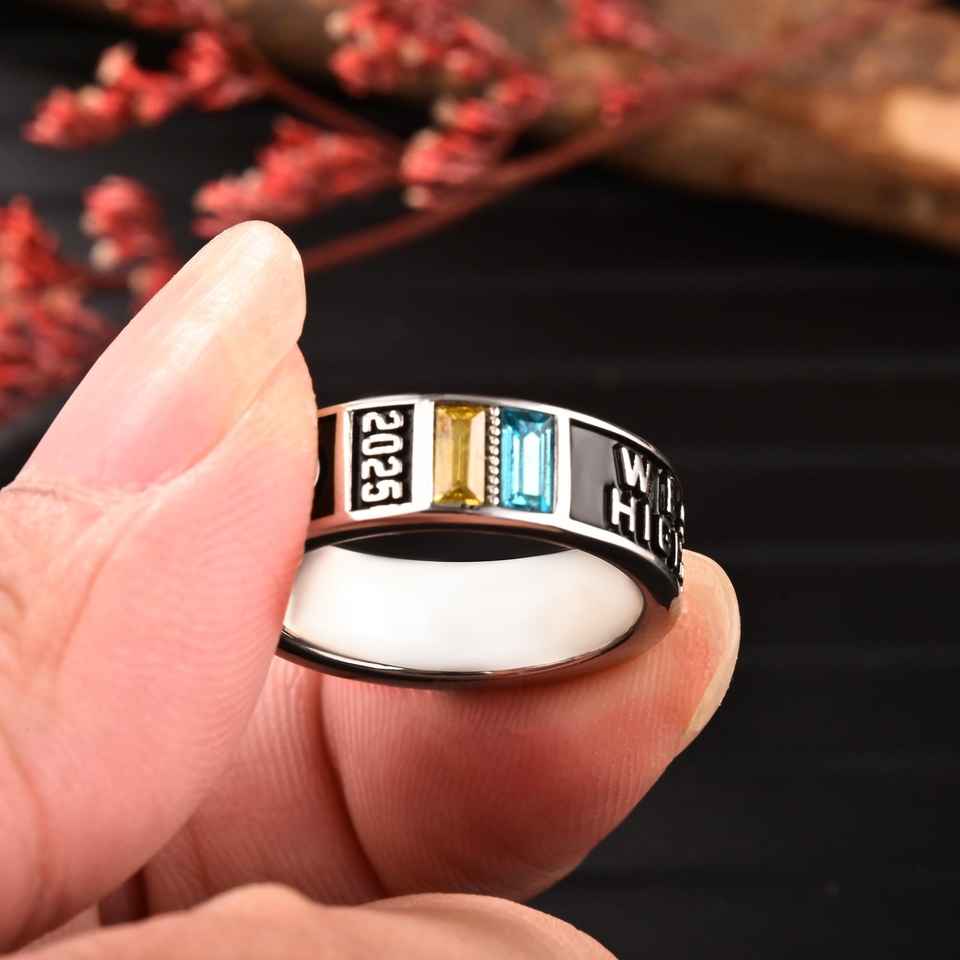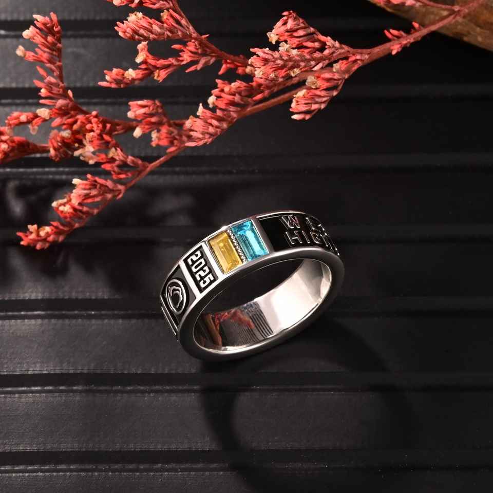 แหวนโรงเรียน BOJ 054 แหวนรุ่นพิเศษสั่งทำได้ แหวนรับปริญญามหาวิทยาลัย แหวนสำหรับนักเรียนมัธยมปลาย/มหาวิทยาลัย ประดับพลอยประจำเดือนเกิด แหวนเงินแท้ 925 สุดฮิต