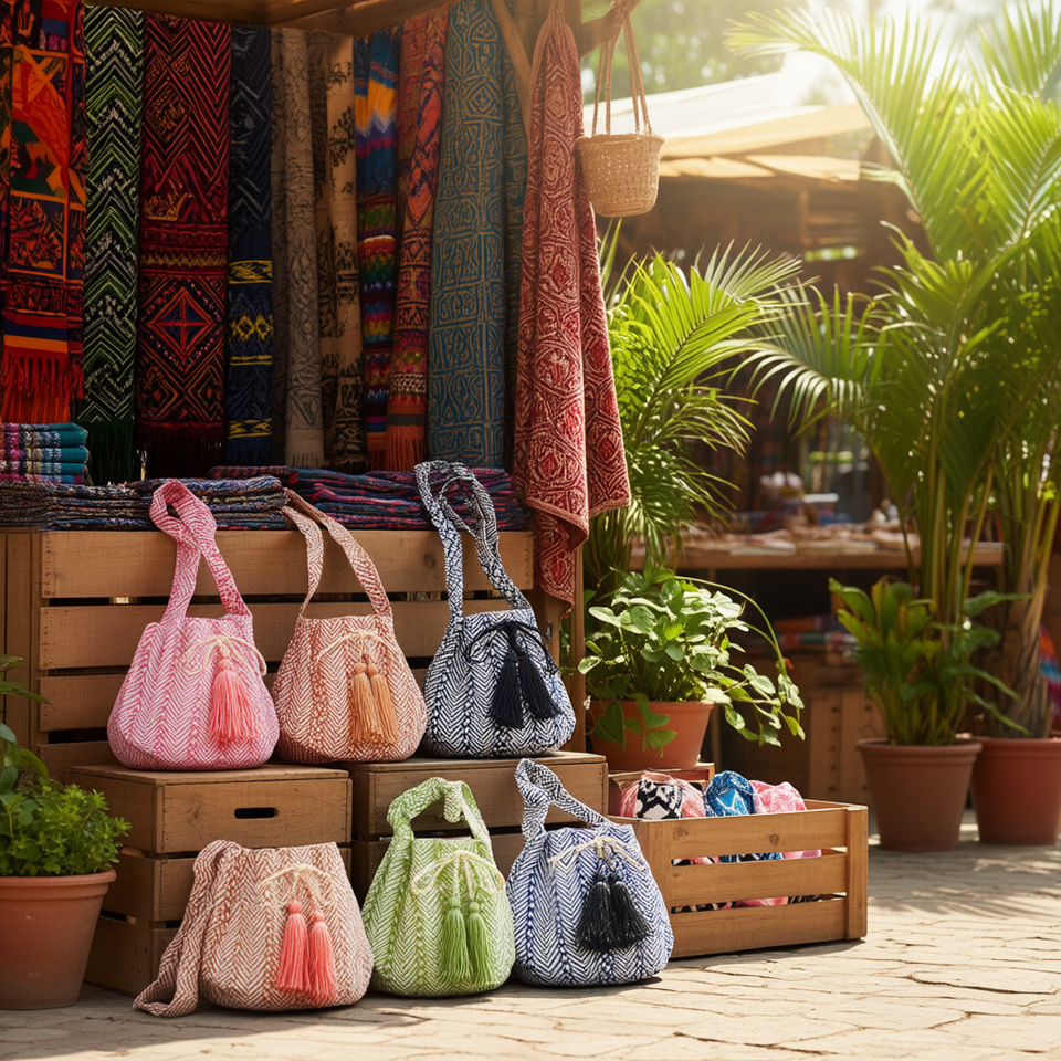 กระเป๋าทรงถังลายเรขาคณิตสไตล์ชาติพันธุ์ BOLSOS ขนาด 21x24 ซม. ดีไซน์พู่ห้อยแบบรูดเชือก กระเป๋าสะพายข้าง