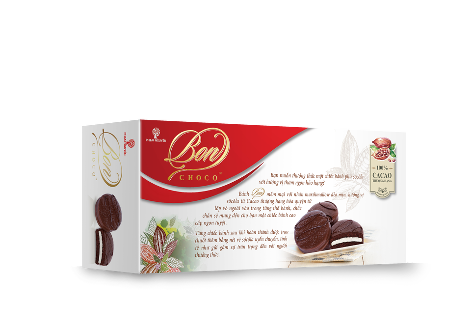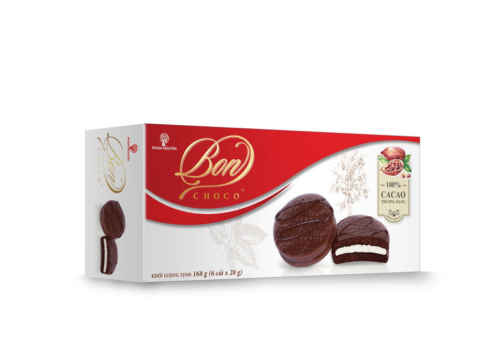 Bon cocoa ฟองน้ำนิ่ม168กรัมบิสกิตช็อกโกแลตบิสกิตพายครีมมาร์ชเมลโล่รสหวานในกล่อง/ห่อ/ถุง