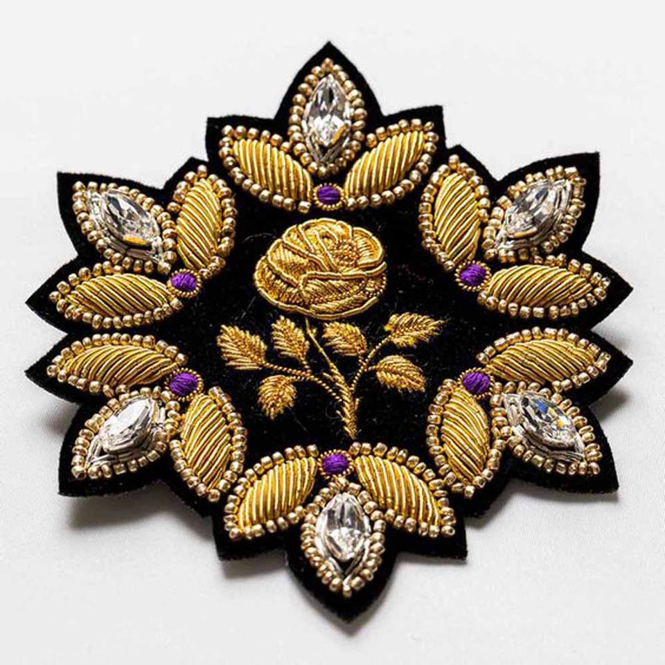 เข็มกลัดปักดิ้นทองคุณภาพสูง ประดับคริสตัล โลโก้สั่งทำได้ ตัวเลือกแบบเย็บติด/ติดเข็ม ผ้าแคนวาสนำกลับมาใช้ใหม่ได้