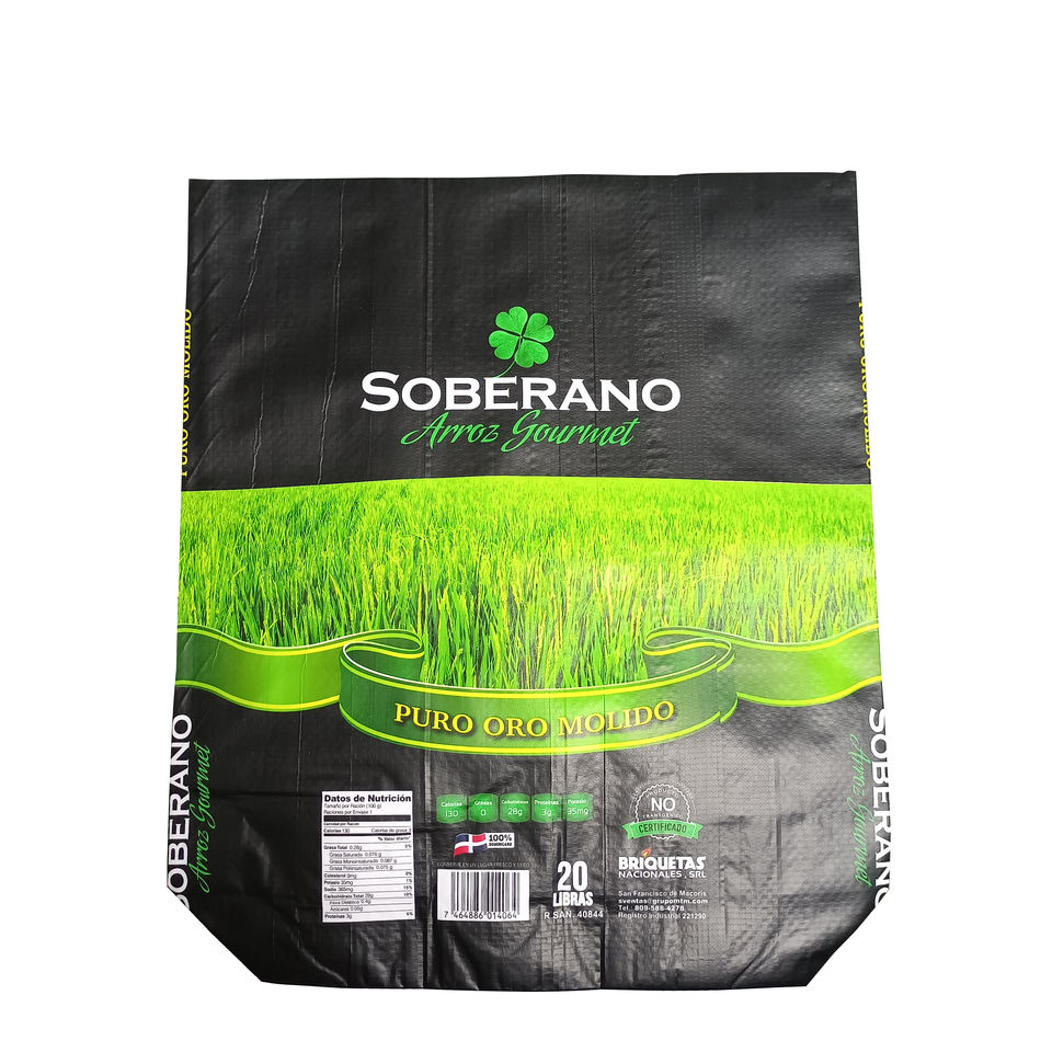ถุงข้าวแบบก้นตั้งเคลือบ BOPP ขนาด 25 กก. 50 กก. ถุงโพลีโพรพิลีนทอสำหรับบรรจุเมล็ดพันธุ์ ถุงบรรจุภัณฑ์ข้าวพิมพ์ลายตามสั่ง ขนาด 10 กก.