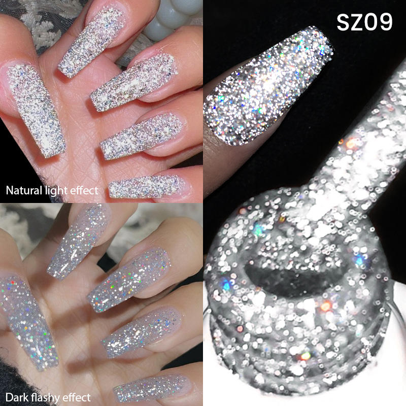 เจลกลิตเตอร์สะท้อนแสง UV สำหรับมืออาชีพอุปกรณ์ทำเล็บแบบเลเซอร์ดิสโก้สีสันสดใสขนาด10มล. สำหรับตกแต่งเล็บ