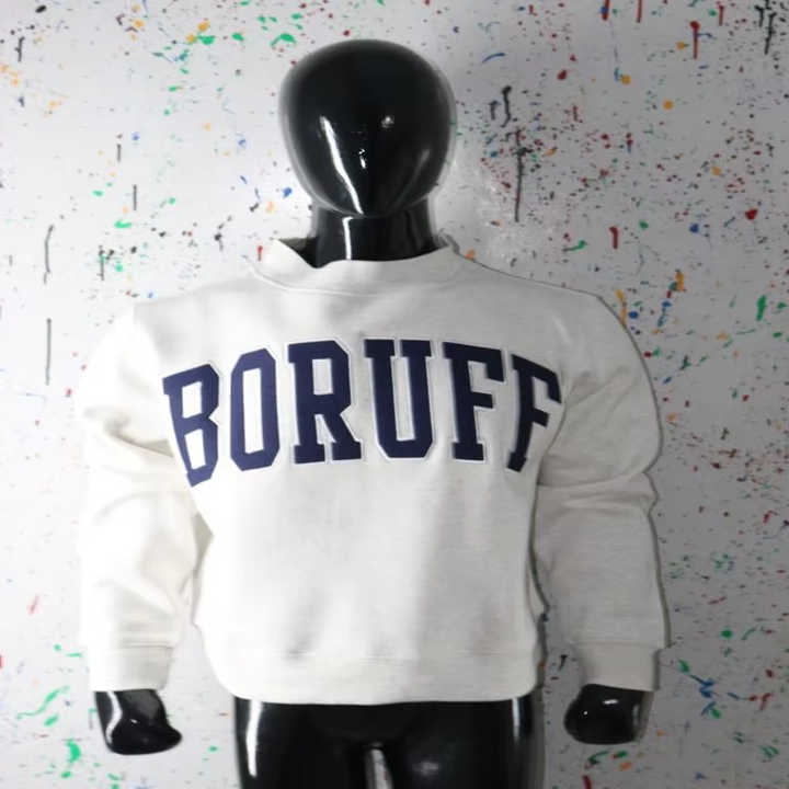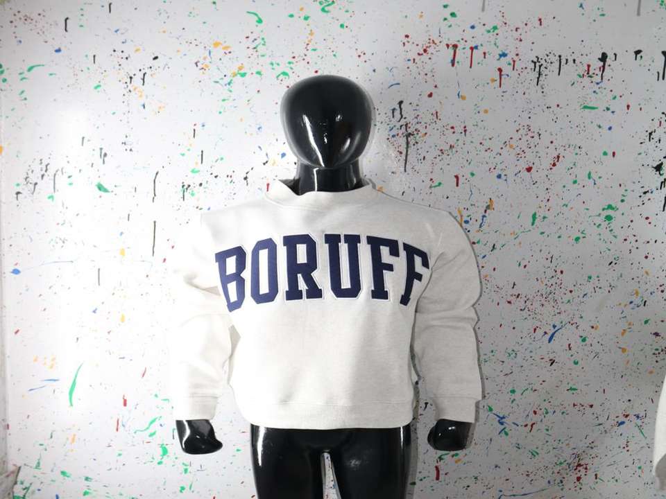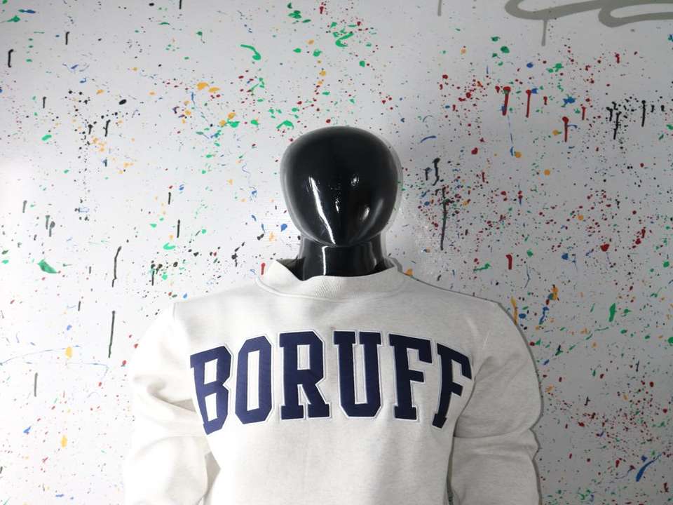 เสื้อสเวตเชิ้ตคอเต่าสีเทา BORUFF พร้อมลายปักสีน้ำเงิน 100% คอเสื้อกว้าง ปรับแต่งได้ CLUSH SPORTS