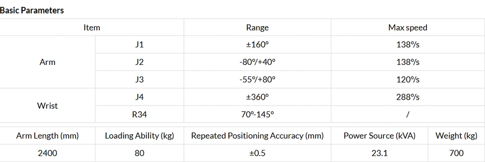 หุ่นยนต์จัดเรียงพาเลท BORUNTE BRTIRPZ2480A แบบ 4 แกน รับน้ำหนักได้ 80 กก. ระยะเอื้อม 2400 มม. หุ่นยนต์แขนกลอุตสาหกรรมสำหรับการจัดการและวางซ้อน