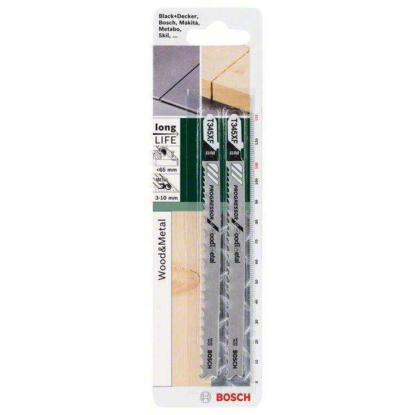 Bosch-2609256737 bim ใบเลื่อยจิ๊กซอว์, T 345 XF ''proproproxor สำหรับไม้และโลหะ '' - EAN ใบมีด3165140390941และแผ่นตัด