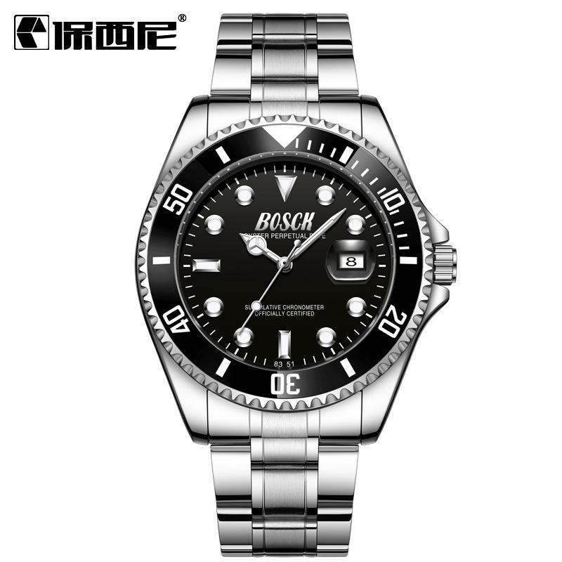 นาฬิกาผู้ชาย bosck ปฏิทินนาฬิกาข้อมือธุรกิจกันน้ำเรืองแสงควอตซ์ relogio masculino